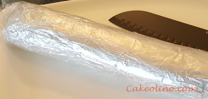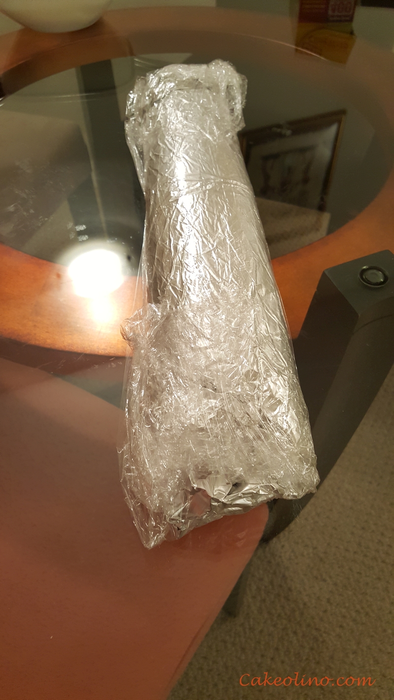 Lift the foil covering the cake and roll it forward until cake is rolled. - Put the cake onto clean foil and wrap it tight. You can also add a layer of cling wrap over aluminum foil to protect the taste and freshness of the cake and prevent it from absorbing flavors and smells from other food in fridge or freezer.