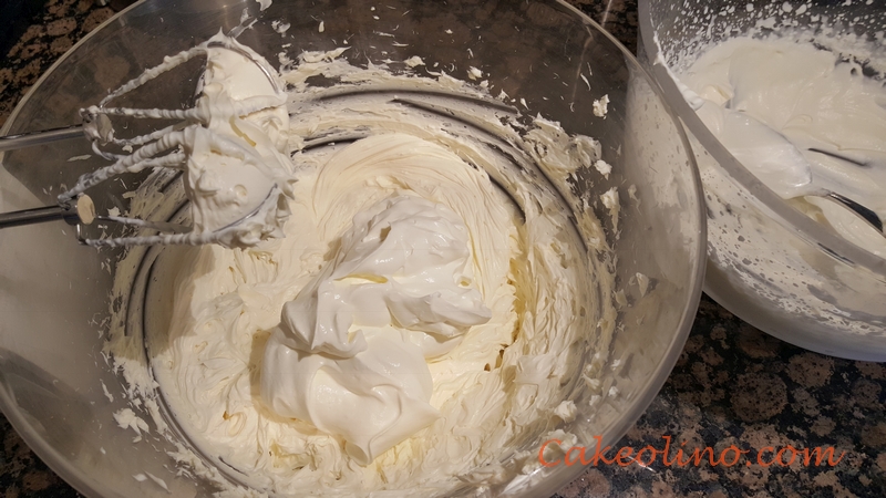 - In a large mixing bowl combine all cheese cream ingredients (Cream Cheese, Mascarpone Cheese, Sweetener, Vanilla Extract, Imitation Rum Extract, Cinnamon).