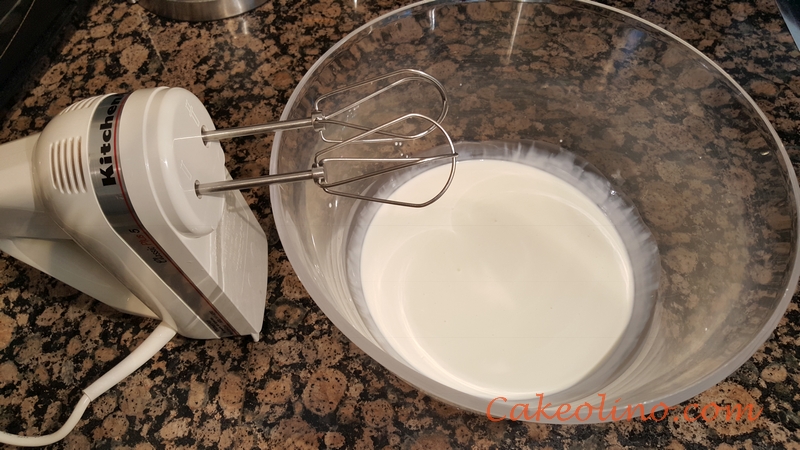 - Using a hand mixer, whisk on high speed until stiff peaks form (around 5 minutes). Do not over beat.