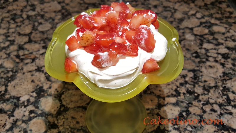 - Chop strawberries, sprinkle sweetener evenly over them and mix it well so all strawberries are evenly covered with sweetener.