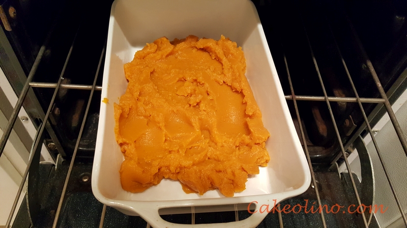 If crust starts forming earlier, lower the temperature or remove the pumpkin puree from the oven.