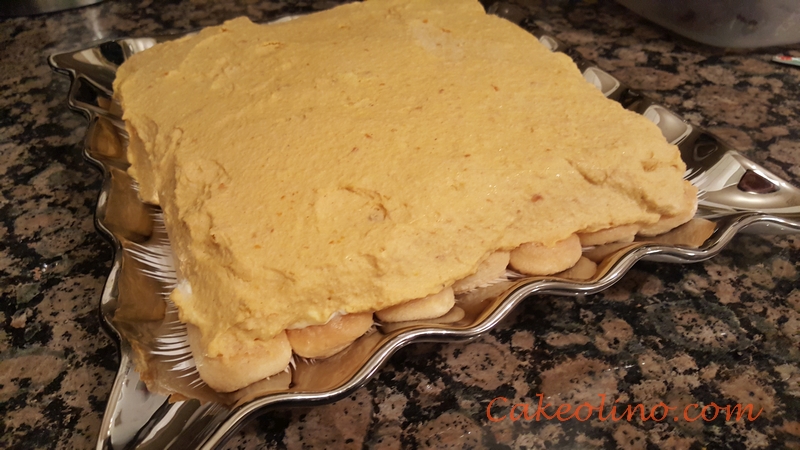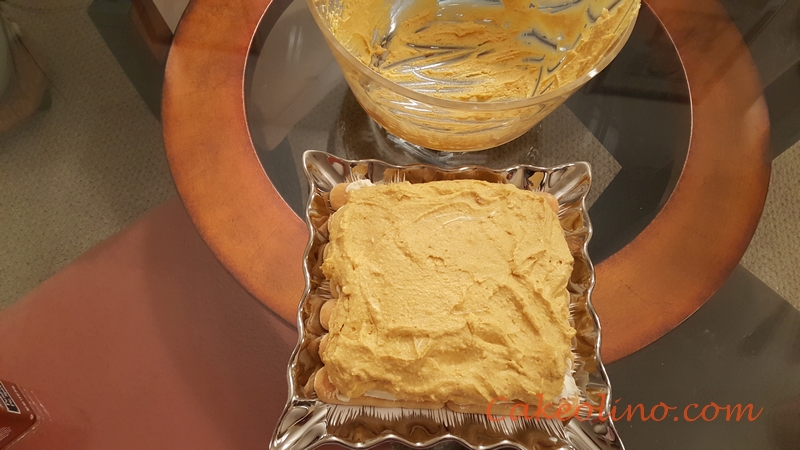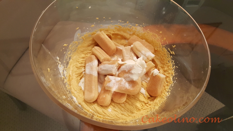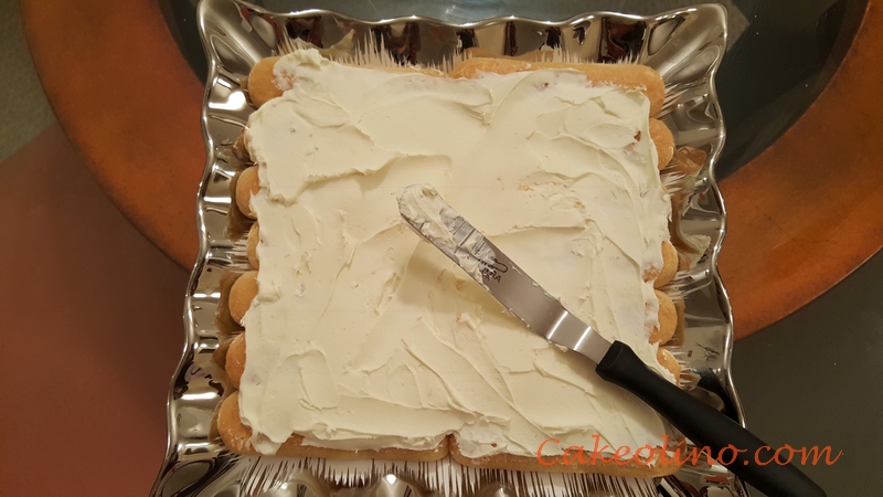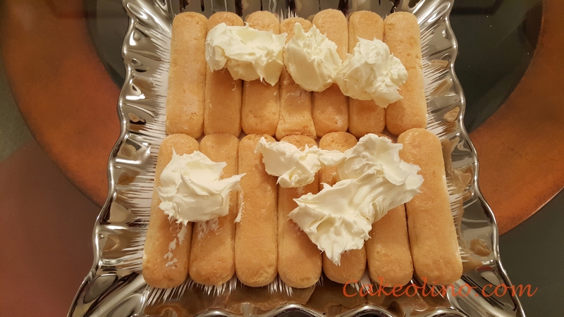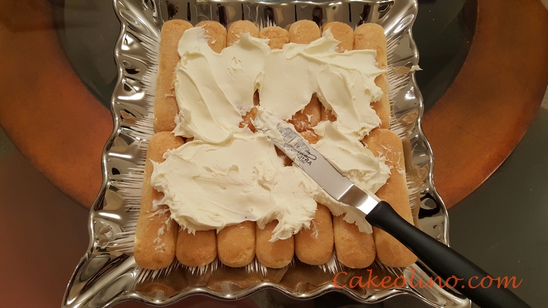 - Spread mascarpone cheese over base made of ladyfingers.