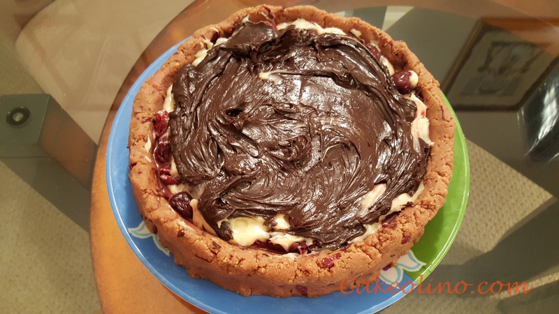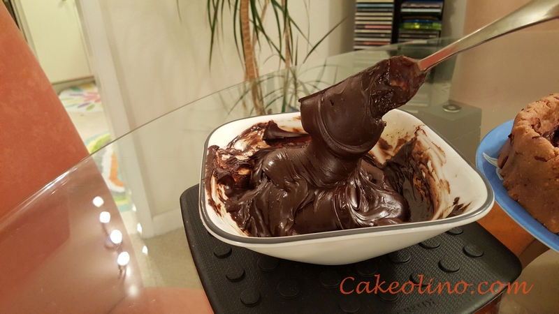 - Pour semi-sweet chocolate fudge on the top of the white chocolate ganache and even the top.
