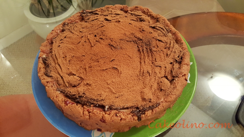 It is time to decorate the cake. I have decided to keep it simple and sprinkle it with unsweetened cocoa.