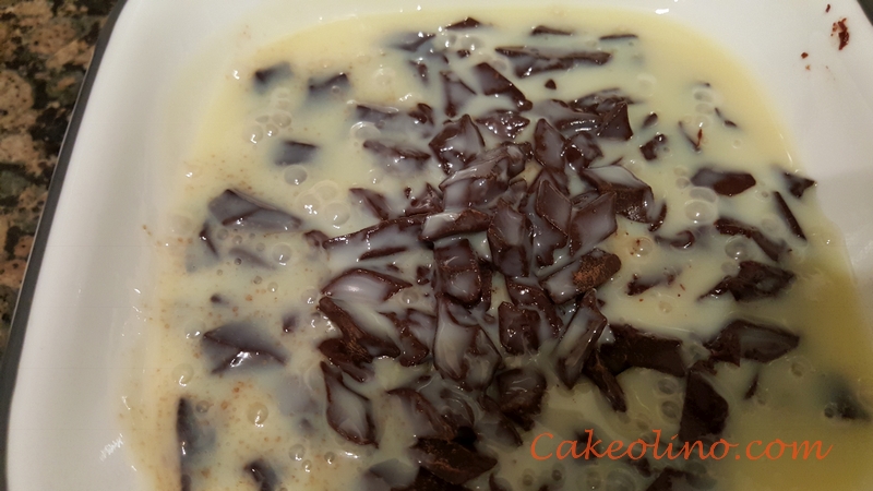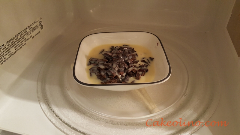 - In microwavable bowl, mix dark chocolate pieces with condensed milk and microwave for 1 minute